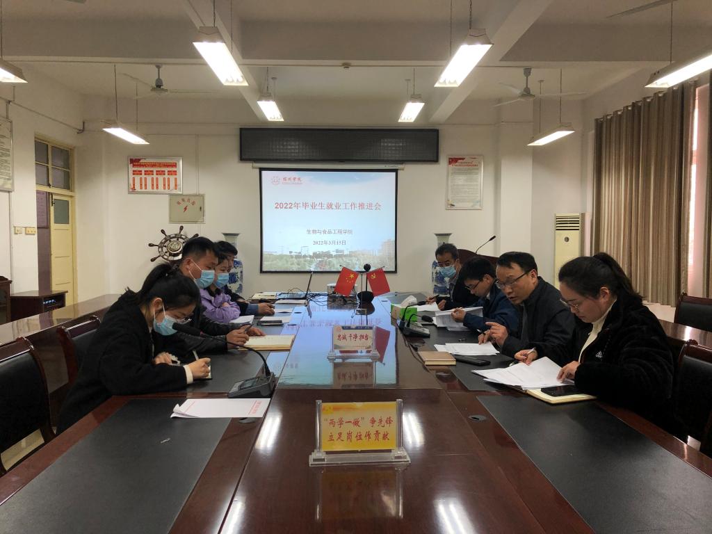 为进一步落实推进2022届毕业生就业工作,2022年3月15日,生工学院召开2022届毕业生就业工作推进会,学院党委书记赵亮、院长张兴桃、副院长王海潮、副书记李娜和各班级辅导员参加会议,会议由学院党委书记赵亮主持。