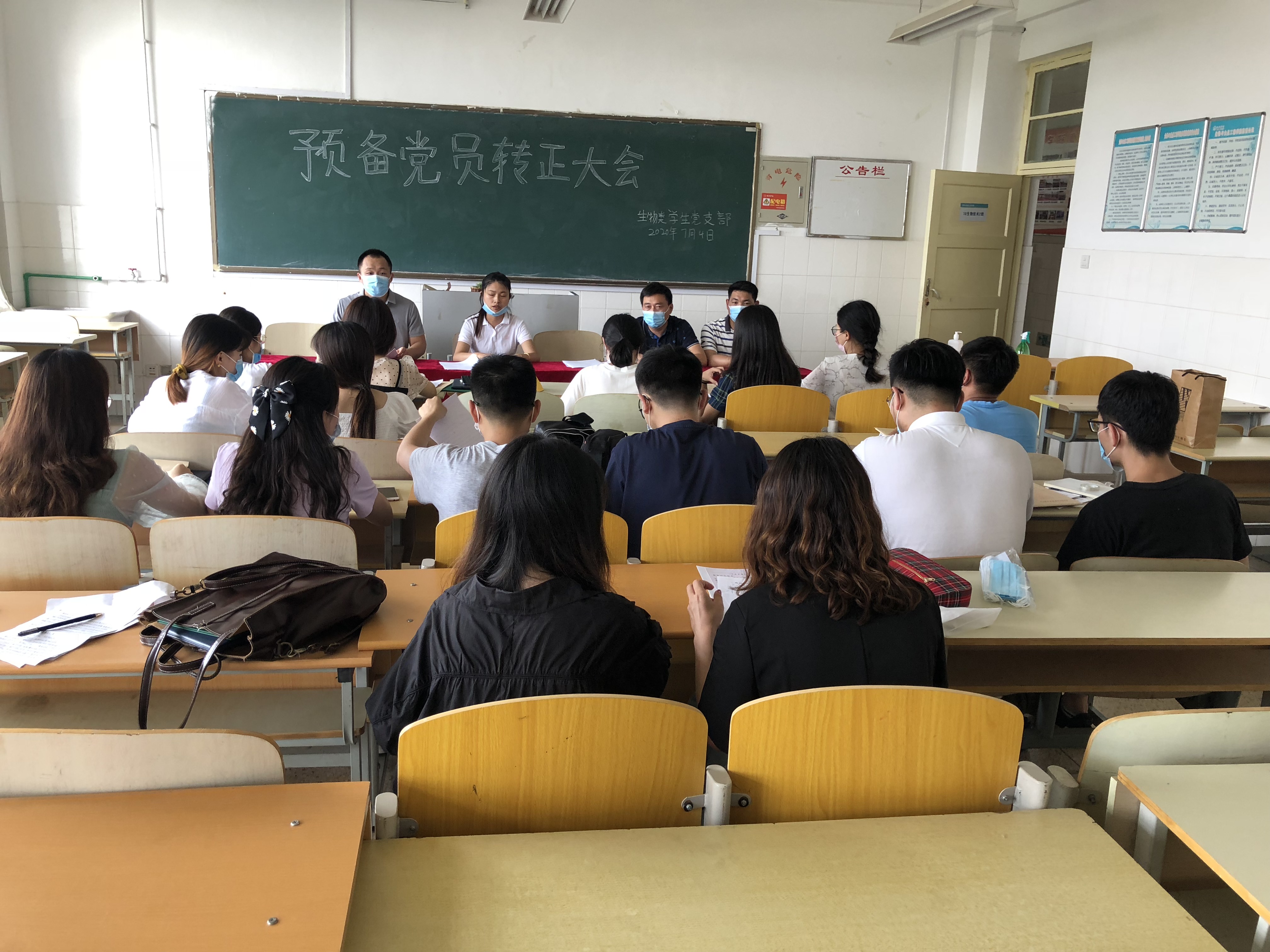 生物与食品工程学院学生党支部于2020年7月4日下午3点在实验楼A516和A514举行了预备党员转正大会,本次会议围绕生物类5名预备党员和食品类4名预备党员转为正式党员的主题展开,会议由生物类学生党支部书记甘守伟老师和食品类学生党支部书记雷柠檬老师主持召开,党员的转正流程主要由学生党支部书记甘守伟老师和雷柠檬老师负责。