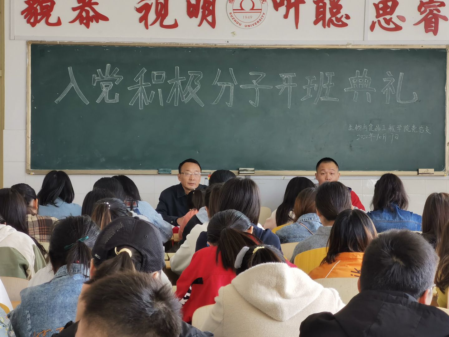 2020年10月17日上午,生物与食品工程学院第33期入党积极分子在实验楼A521召开“入党积极分子开班典礼”。该会由生物类专业学生党支部书记甘守伟主持,生工学院党总支书记赵亮和全体33期入党积极分子参与本次典礼。