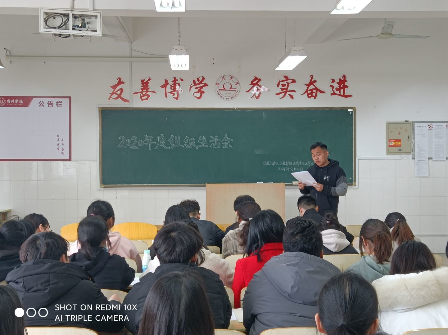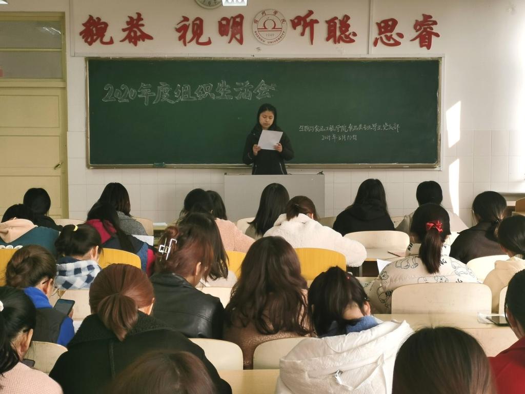 为贯彻落实《中共宿州学院委员会关于召开2020年度基层党组织组织生活会和开展民主评议党员工作的通知》文件精神,按照学校党委和二级学院分党委的安排,3月10日下午,生物与食品工程学院学生党支部在实验楼A516、A521召开组织生活会暨民主评议党员会议。会议由学生支部书记甘守伟、雷柠檬主持,支部学生党员参加。