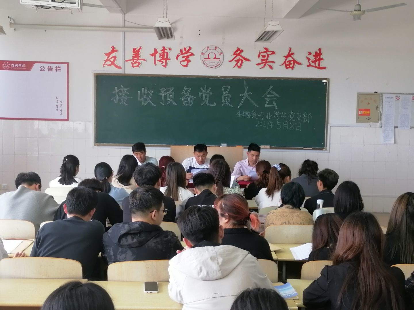 为紧跟党的号召,培养优秀共产党员,2021年5月8日中午,生物与食品工程学院学生党支部在实验楼A516、A521召开接收预备党员大会,会议由生物类党支部书记甘守伟和食品类党支部书记雷柠檬主持,部分教师党员和学生党员参加会议。