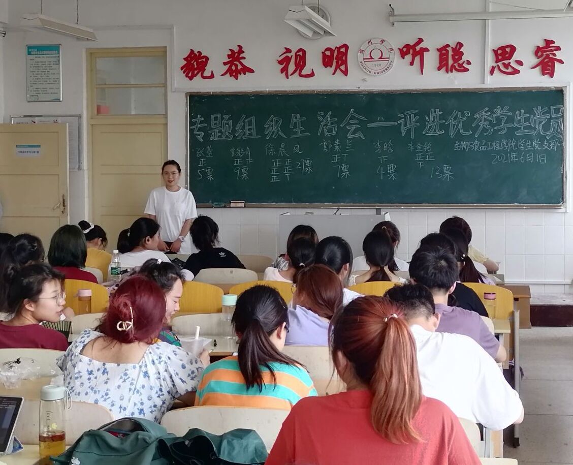 为进一步贯彻落实新时代党的建设总要求、新时代党的组织规划路线以及庆祝中国共产党成立100周年,巩固和深化“不忘初心,牢记使命”主题教育成果。6月1日中午,生物与食品工程学院学生党支部在实验楼A521召开专题组织生活会---评选优秀学生党员,全体学生党员参与。