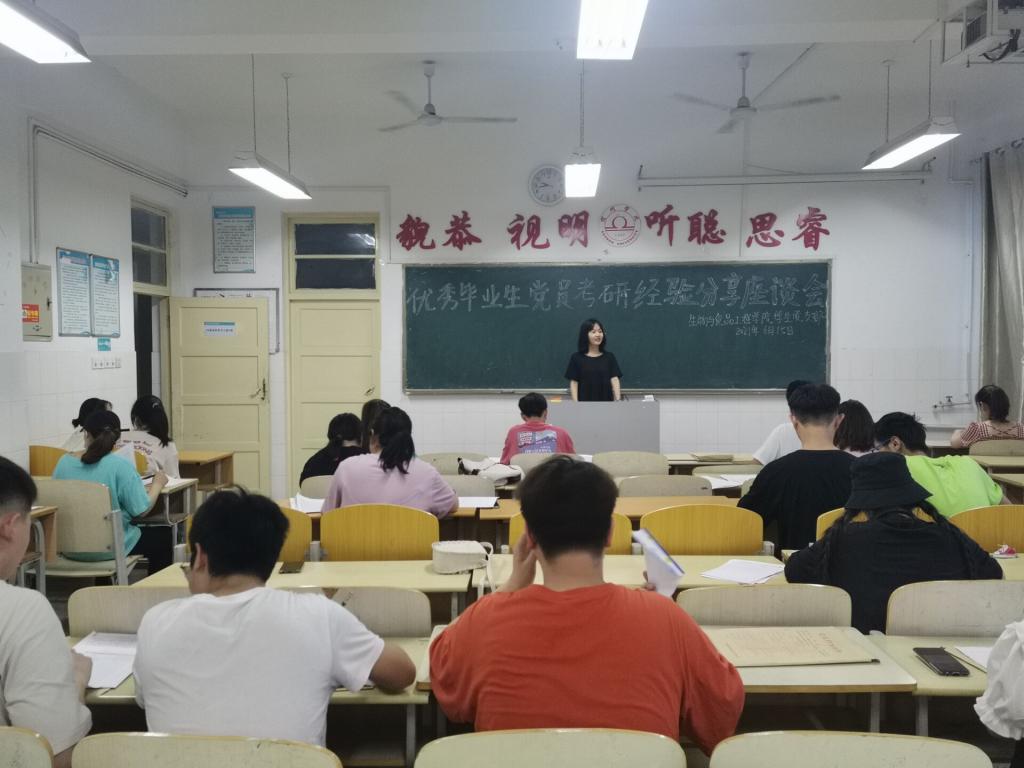 本次交流会邀请到优秀毕业生党员金燕,王思月等分享自己的考研经历,部分学生党员参加此次交流会。