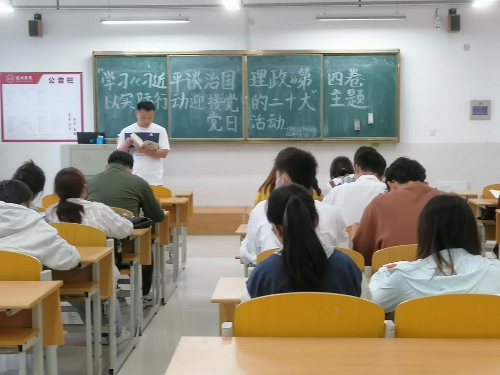 以实际行动迎接党的二十大胜利召开,9月28日下午四点,生物与食品工程学院生物类专业学生党支部和食品类专业学生党支部分别于实训楼A204、A205召开“学习《习近平谈治国理政》第四卷、以实际行动迎接党的二十大”主题党日活动。