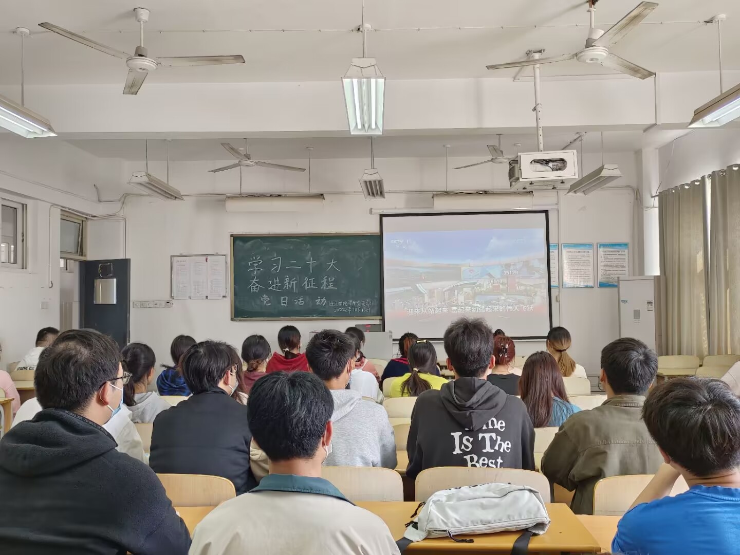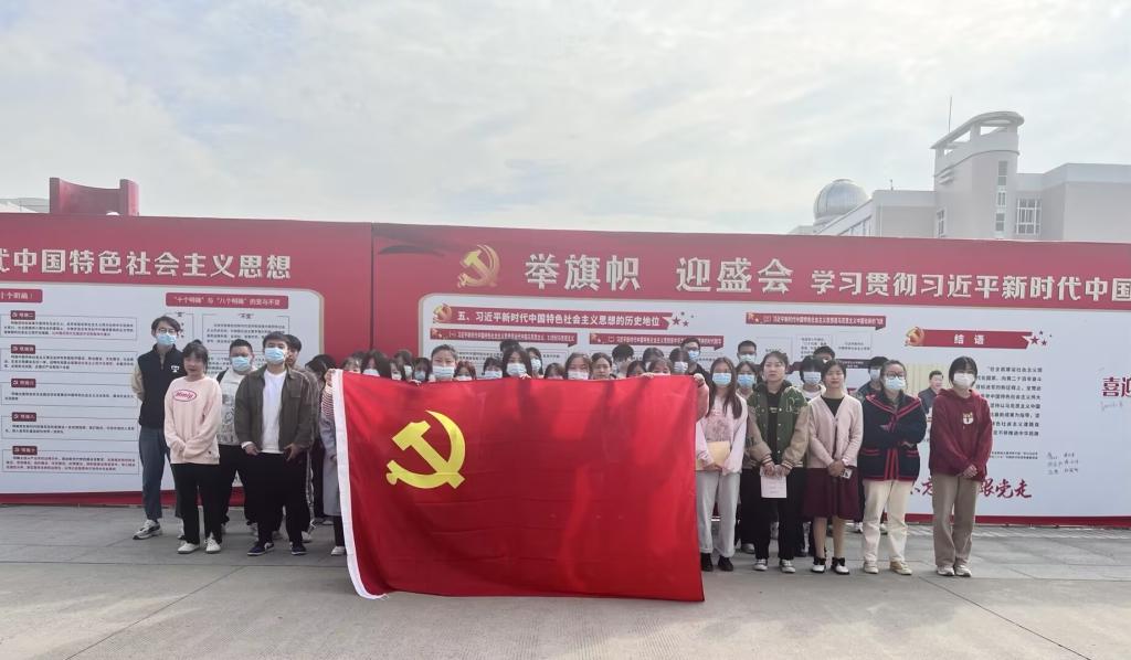 首先,由两位学生党支部书记带领全体学生党员在图书馆门口观看有关中国共产党的发展历史的展板。在参观学习结束后学生党员纷纷在展板下签名,坚定了听党指挥、紧跟党走的决心和使命。随后,学生党员在教学楼A505观看了中国共产党第二十次全国代表大会开幕盛况,认真聆听习近平总书记所作政府报告,学习贯彻落实好党的二十大精神,以良好的精神状态为新时代中国特色社会主义建设贡献自己的一份力量。在观看党的二十大直播中,让学生党员们从中得到了启发和反思,认真书写笔记,使学习的过程成为锤炼党性的过程,以高昂的精神砥砺前行,将自己的各项学习做得更好。
