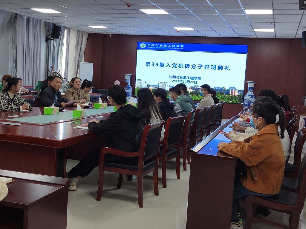 为切实加强入党积极分子的培养教育,确保发展高质量党员,进一步提高党员素质。生物与食品工程学院于2022年10月27日下午一点在学校会议室举行第三十九期入党积极分子开班典礼。