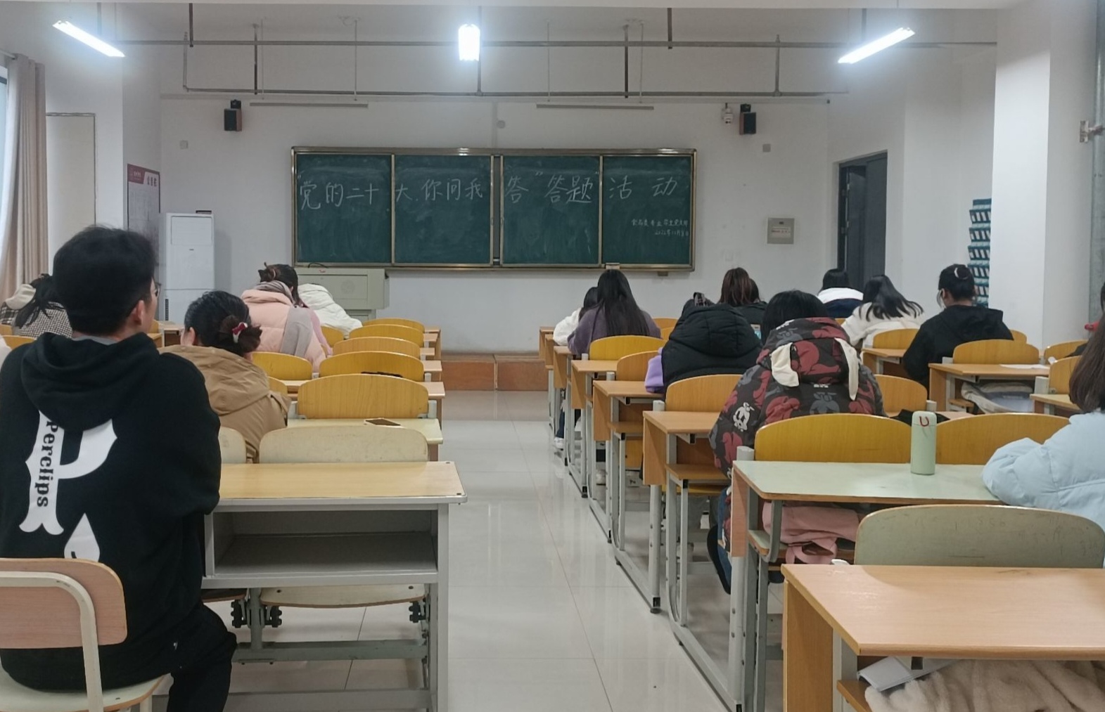 本次活动试题以党章和时事政治为主题,内容涉及党章和党的基本理论知识及党的二十大精神。试卷囊括选择题、填空题、简答题等题型,全方位、多角度地检验党员同志们对二十大报告精神和新修改党章相关知识的掌握程度。答题期间,同学们认真作答,严格遵守考场纪律,考场纪律良好。此次活动将支部学习贯彻党的二十大精神推向了高潮、引向了深入,较好地呈现了关于支部贯彻落实党的二十大精神的理论成果,同时也展现了全体学生党员昂扬向上的精神面貌,激发了其对党的理论知识的学习热情。