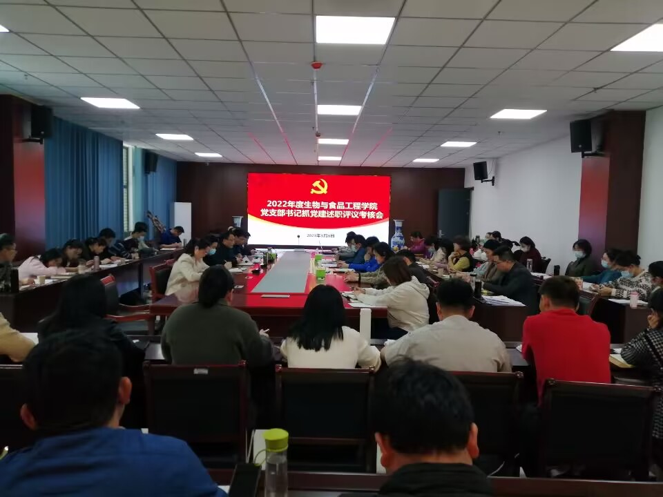 2023年3月8日下午,生工学院在会议室召开2022年度党支部书记抓党建述职评议会,学院党委委员、党支部书记、党支部委员、教师和学生党员代表参加述职评议会。会议由党委书记赵亮主持。