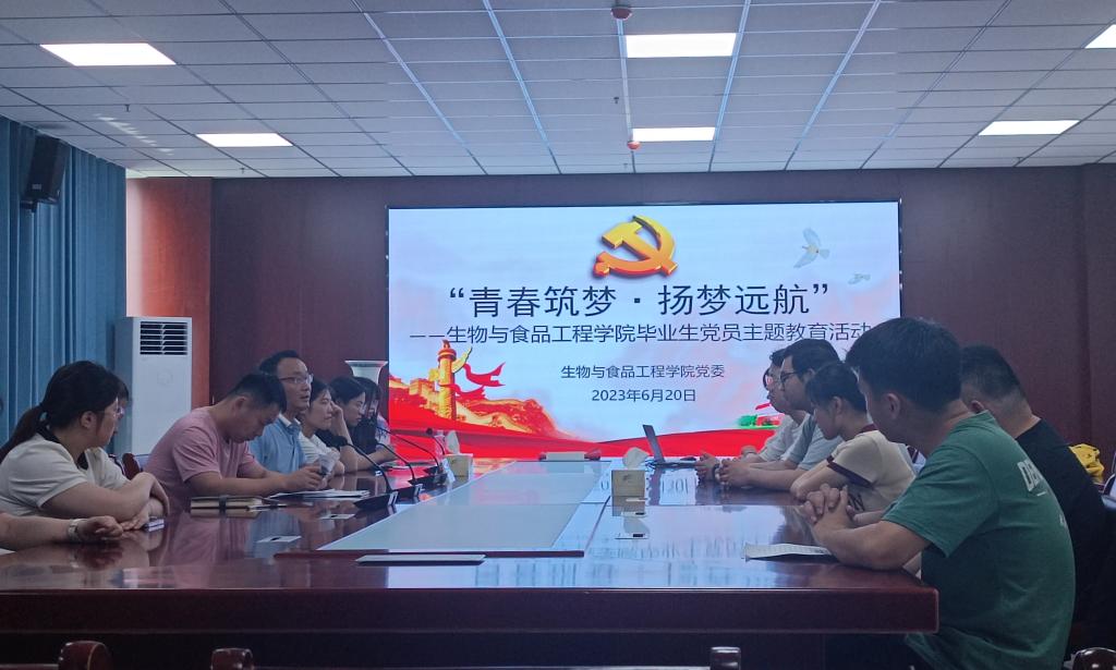 引导毕业生党员厚植爱党、爱国、爱社会主义情怀,时刻牢记党员身份,牢记党员职责和使命担当,在新的阶段发挥好党员模范带头作用,为中华民族伟大复兴的中国梦奉献青春力量,2023年6月20日下午一点,生工学院在实训楼学院会议室举办“青春筑梦·扬梦远航”毕业生党员主题教育活动。学院党委书记赵亮、学生党支部书记以及全体毕业生党员出席了本次活动。首先,生工学院全体毕业生党员在党委书记赵亮带领下重温入党誓词。庄严的宣誓,是提醒毕业生党员要守初心、担责任,继承和发扬党的革命精神,走好新时代每个人自己的长征路。接下来,由赵亮书记给毕业生党员上党课。党课内容主要为两个部分:第一部分,讲解习近平新时代中国特色社会主义思想的精神实质和丰富内涵,主要内容有“十个明确”“十四个坚持”“十三个方面的成就”以及“六个必须坚持”。第二个部分,讲解“两个确立”的决定性意义。赵亮书记以国家政策为切入点,嘱咐全体毕业生党员要时刻关注党和国家的各项方针政策,将自身的学习与工作融入国家方针政策当中,在实践中贯彻落实一个党员的义务与责任。