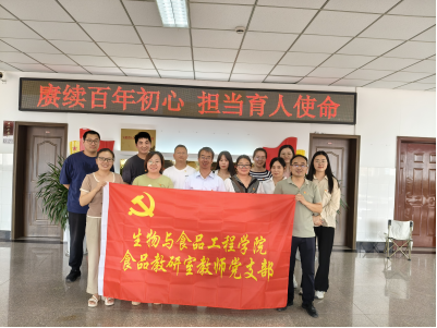 生物与食品工程学院食品专业教研室教师党支部于6月19日13:30开展“明党纪、强党性、践使命"党纪学习教育主题党日活动,首先进行参观图书馆4楼革命传统教育馆,参观结束后回到学院会议室开展党纪知识测试、支部书记讲党课、交流研讨、重温入党誓词等活动。