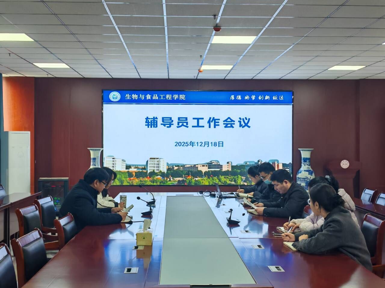 生物与食品工程学院于12月18日召开辅导员工作会议,生物与食品工程学院党委书记刘超、学院党委副书记兼纪委书记李娜以及全体辅导员参加。会议围绕学生心理健康、研究生考试全过程服务保障、元旦及寒假安排、期末诚信考试和就业工作等重点内容,进行了系统部署和细化安排。会议明确,要将安全教育与诚信考试教育有机融合,纳入期末主题班会重点内容,通过案例警示、纪律宣讲和诚信引导,切实增强学生的底线意识和责任担当。同时,统筹推进2026届毕业生就业工作,精准摸排就业意向,强化岗位对接与分类帮扶,确保就业服务工作不断档、有力度、见实效。
