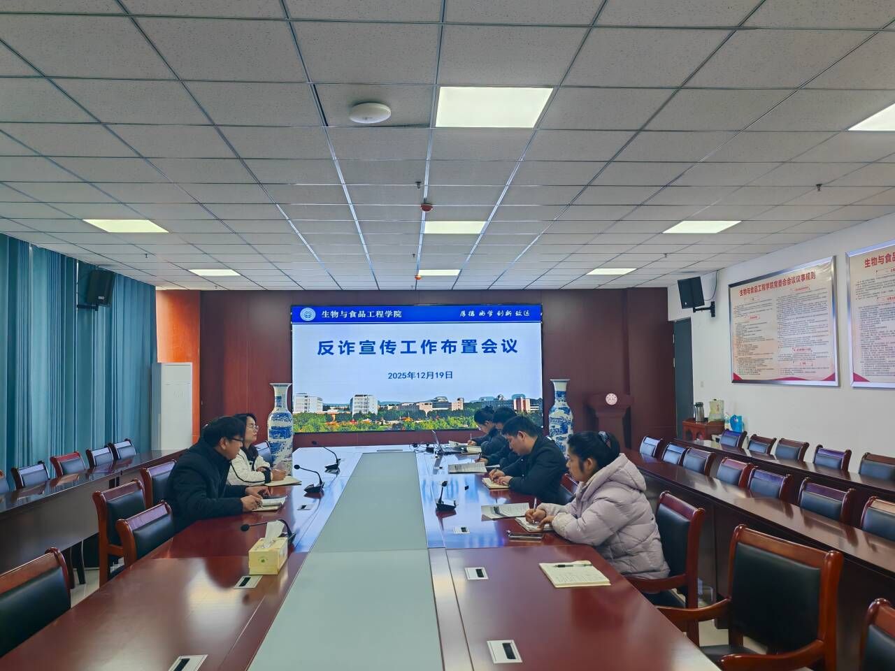 为深入贯彻落实学校关于安全稳定工作的部署,有效提升学生防范电信网络诈骗的意识和能力,切实保障学生财产安全,生物与食品工程学院于12月19日召开反诈宣传工作布置会议。生物与食品工程学院党委书记刘超、学院党委副书记兼纪委书记李娜以及全体辅导员参加。