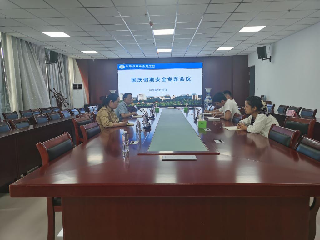 2022年9月29日下午,生物与食品工程学院在实训楼A1105会议室召开国庆假期学生安全与疫情防控专题会议。生物与食品工程学院党委书记赵亮,党委副书记、院长张兴桃,纪委书记李娜及全体辅导员参加了本次会议,会议由赵亮主持。