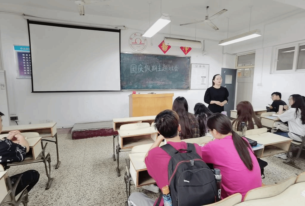 会后,各班级辅导员深入23个班级召开国庆假期安全教育主题班会。