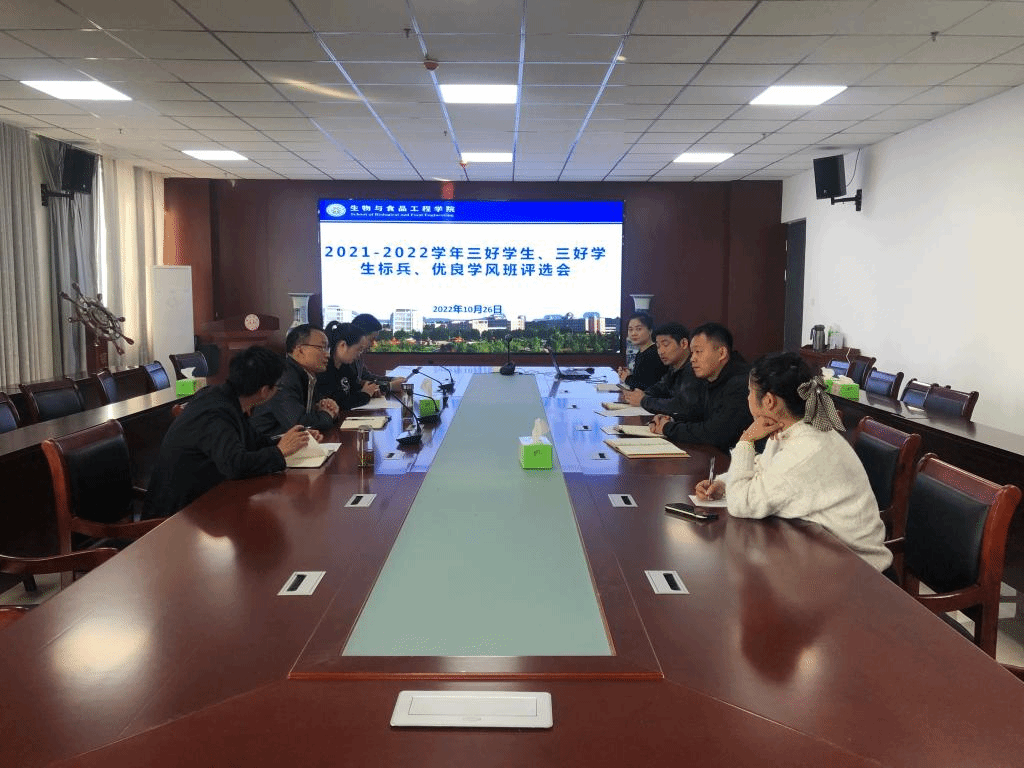 10月26日上午,生工学院在实训楼A1105会议室召开2021-2022学年“三好学生”“三好学生标兵”“优良学风班”评审会议。会议由党委书记赵亮,院长张兴桃,副院长王海潮、党委副书记李娜以及各年级辅导员参加了评审会。