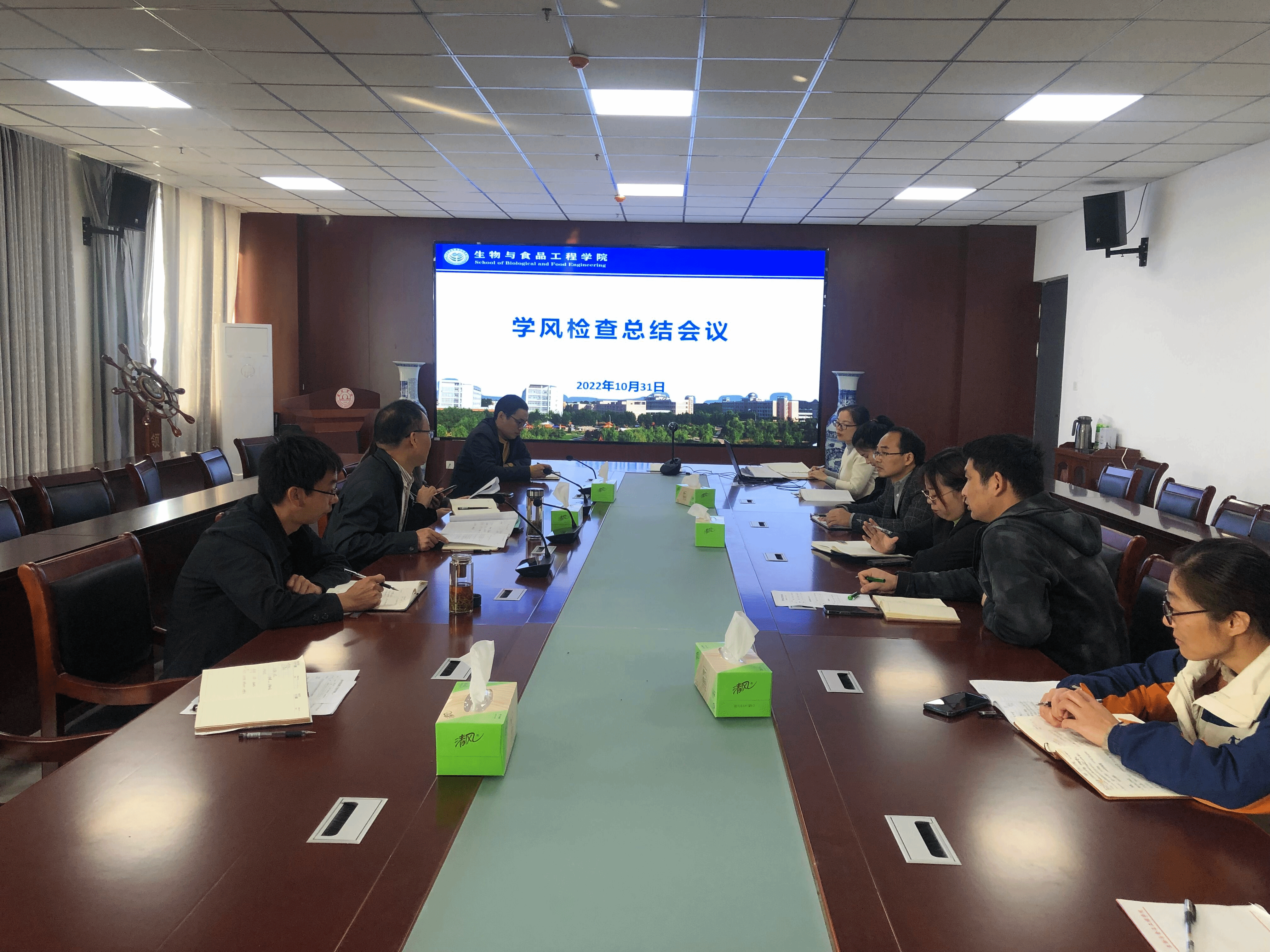 为落实“立德树人”根本任务和“三全育人”综合改革任务,践行“笃学 笃行 笃信”的优良学风,2022年10月31日上午9点,生物与食品工程学院在实训楼A1105会议室召开期中学风检查总结工作专题会议。生物与食品工程学院党委书记赵亮、副书记、院长张兴桃,党委副书记、纪委书记李娜及全体科级干部、辅导员、教务员参加了本次会议,会议由赵亮书记主持。