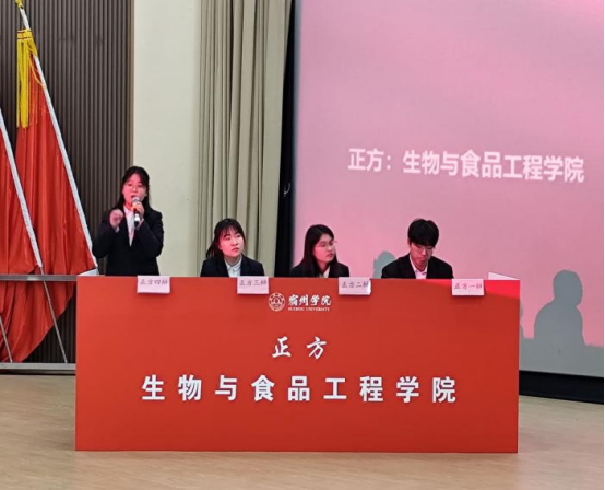 在初赛阶段,张刘峥,任姗姗,钱荪宁张雨悦等选手出口成章,说辞头头是道,过关斩将,气势满满,一路杀到总决赛。决赛现场,观众们翘首以待,气氛紧张而热烈。双方队伍分别就“理想人才以‘仁’/‘智’为主”这一辩题展开辩论。身为生工学院的正方以”一夫当关“之势展开激烈辩论打的身为反方的管理学院手足无措。让人意外的是反方很快调整气势和状态,运用各种例子进行反击,最终生工学院勇夺本次比赛冠军。