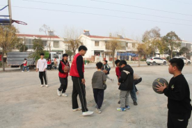 在篮球场内,23食科和23药学的男生们教小朋友打篮球,不仅强身健体,自己也能从帮助他人的过程中收获一份喜悦。