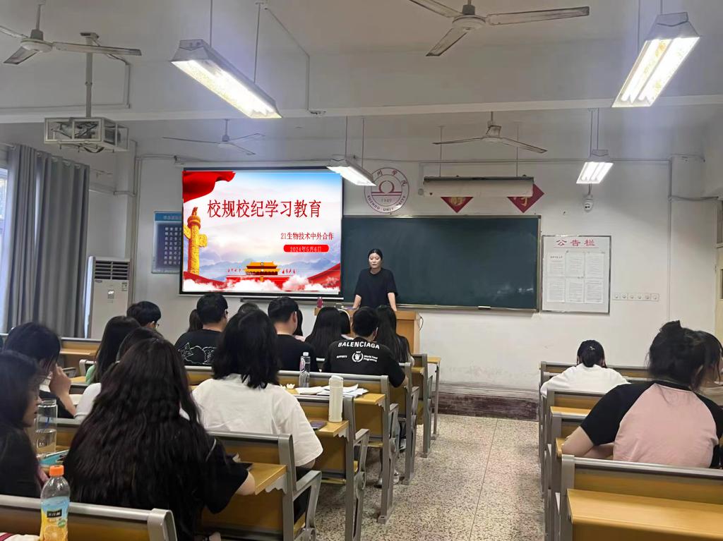 为创建良好的校风学风,构建和谐有序、积极向上的育人环境,提升学生对校规校纪的认识和遵守程度,维护学校正常的教育教学秩序和校园安全稳定。生工学院在各班级开展校规校纪学习教育系列活动。
