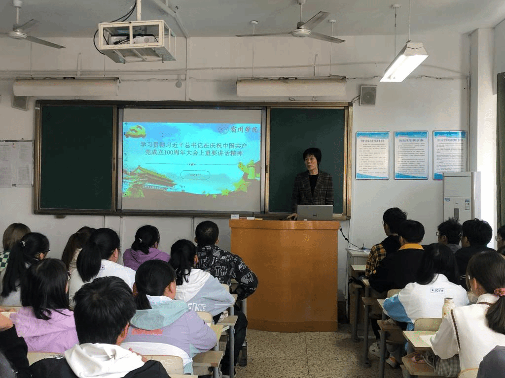 为迎接中国共产党建党100周年,更好地落实立德树人根本任务,激励大学生切实做到学史明理、学史增信、学史崇德、学史力行,2021年10月29日上午,宿州学院院长张莉以《学习贯彻习近平总书记在庆祝中国共产党成立100周年大会重要讲话精神》为题,在教学楼A515教室为生物与食品工程学院21药学班学生上了一场专题思政课。
