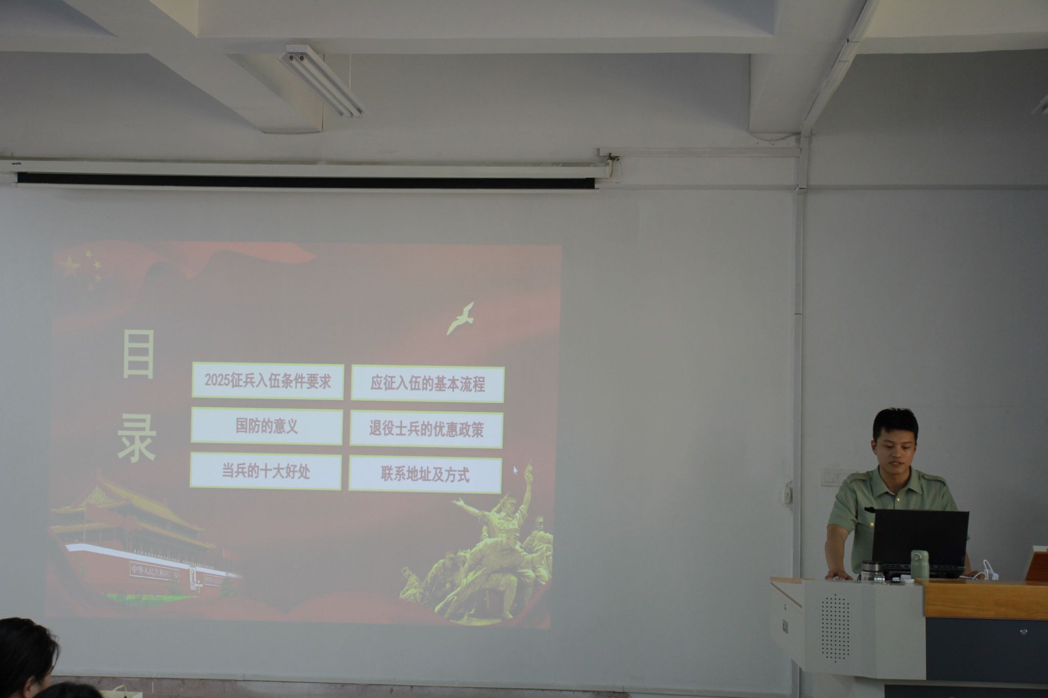 为使生物与食品工程学院学生深入了解征兵的意义及相关优惠政策,推动毕业班学生应征入伍报名的积极性和主动性。2025年5月28日下午,生物与食品工程学院在教学楼A114成功举办2025年征兵入伍宣讲会,生物与食品工程学院有征兵意向的学生参加会议。