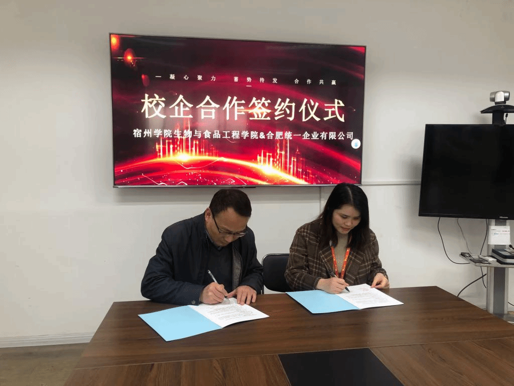 实地考察了合肥统一企业有限公司、合肥恰恰食品股份有限公司、合肥顶津食品有限公司、合肥华益药业集团、合肥盛世康禾生物技术有限公司、合肥百洋医药等多家优质企业。在与企业负责人的交流座谈中,赵亮着重介绍了学院学科专业设置、人才培养、就业工作等方面,也详细了解用人单位的人才需求、企业发展规划、企业文化、招聘政策、工作环境、工作发展空间等情况并且与5家企业签订实习就业基地协议。