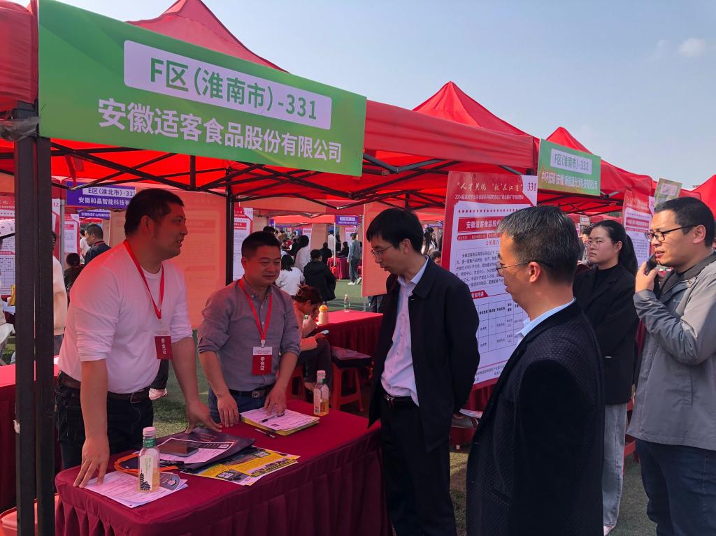 为帮助2024届毕业生顺利实现就业,支持和鼓励毕业生留皖就业,4月9日下午,宿州学院在东校区田径场举办“人才兴皖 ‘就’在江淮”2024届高校毕业生系列省级招聘活动之“皖北振兴”专场招聘会。由生工学院甘守伟老师负责联系的近20家企业在招聘会现场设置招聘点,生工学院院长张兴桃、副院长(教学)王海潮与多家企业人事负责人及求职学生深入交流。