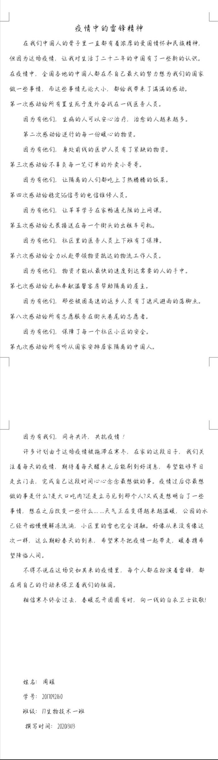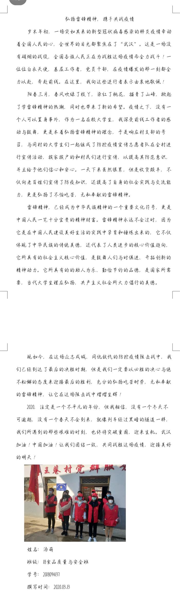 为培养同学们树立正确的世界观、人生观、价值观,并使雷锋精神得到继承和发展。3月17日,生工学院于线上举办了“践行扬雷锋精神 弘扬贤德文化”主题征文活动。