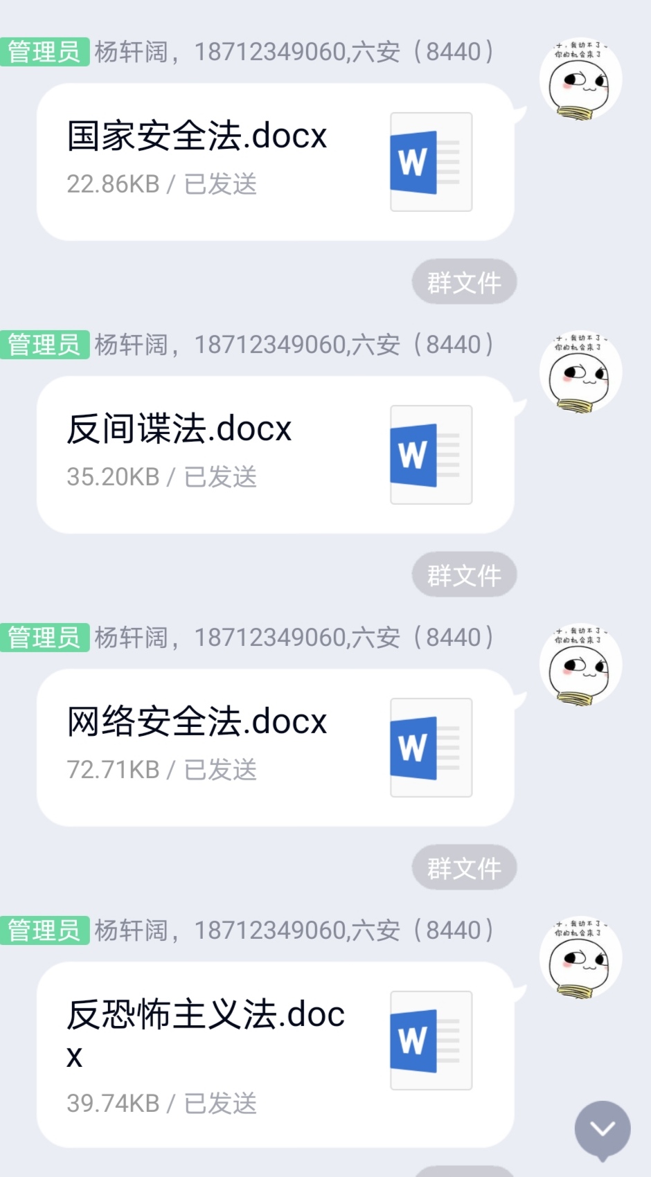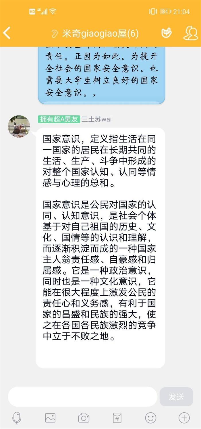 全球疫情扩散蔓延,当前国家安全教育活动更具有特殊意义。各班团支部响应学校倡议,与班委共同筹备此次团日活动,并向同学们积极宣传,鼓励大家共同参与其中。2019生物技术(中外合作)团支以腾讯会议的形式开展本次活动,并收集每位同学打扫卫生的照片,提醒大家在学习过程中也要注意保持环境的干净整洁,形成爱劳动的好习惯。2019级食品质量与安全团支部分享了有关国家安全知识的短视频,并组织各寝室进行分组讨论,了解国家安全教育日及当代大学生应当如何维护国家安全。2018级食品科学与工程二班团支部通过观看国家安全教育日活动有关视频,力求让同学们做到居安思危,牢固筑立起国家安全人民防线的钢铁长城。