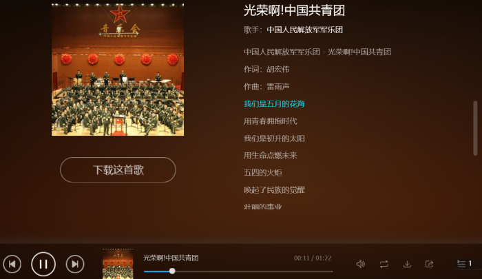 本次讲座主要向同学们介绍了共青团团歌的发展历程。讲座期间,杨茗荃以共青团团歌的2个重要时间点为起点,向大家讲述了共青团团歌的发展:1988年5月8日在第二次全国代表大会上将《光荣啊,中国共青团》确定为中国共产主义青年团代团歌,2003年7月22日,通过了关于《中国共产主义青年团章程(修正案)》的决议将《光荣啊,中国共青团》确定为中国共产主义青年团团歌。讲座的最后,杨茗荃带领同学们重温共青团团歌,正如歌词所唱“我们是五月的花海,用青春拥抱时代,我们是初升的太阳,用生命点燃未来。”每位青年学子用歌喉唱出了自己的一片忠诚和一腔热血。