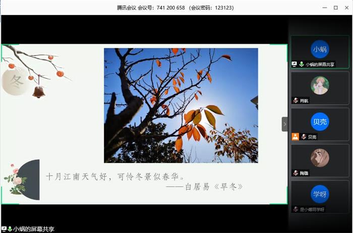 经过前期的宣传各学院积极参赛,共收到植物组作品244份,动物组作品64份。同学们紧扣“林山鸟惊飞,光影五月间”的主题进行创作。活动期间,选手们结合自己的作品在腾讯会议上进行ppt演讲,详细地向大家介绍作品的创意及背后的寓意。动物组中,活泼可爱的布偶猫、自由自在的海鸥、色彩鲜艳的鹦鹉,一幕幕的画面定格住生命的风采,带我们进入到一个奇妙的动物世界。植物组中,高洁的菊花、夭夭的桃花、漫天飞舞的蒲公英,向我们展现了植物蓬勃的生命力。经过评委们评选,动物组中,美术与设计学院的《寻物》等2组作品获得一等奖,生物与食品工程学院的《家有萌宠》等4组作品获得二等奖,机械与电子工程学院的《蛰伏与收获》等5组作品获得三等奖。植物组中,生物与食品工程学院的《春之切》等2组作品获得一等奖,商学院的《售卖春天》等4组作品获得二等奖,数学与统计学院的《春分》等7组作品获得三等奖。