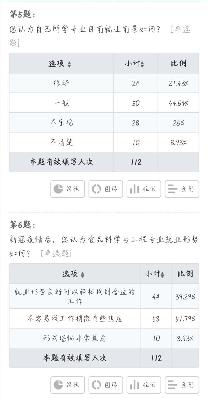 在当地疫情可控的前提条件下,做好自身防护措施在所住地以“云调研”模式进行为期30天的食品科学与工程专业就业形势云调研活动。在活动正式开始之前,调研团队小组长开始分配任务,小组成员之间密切配合,积极筹备本次云调研活动。首先,队员们分工合作,通过互联网平台联系相关专业的老师利用QQ进行访谈,了解食品科学与工程专业就业形势。访谈后积极联系食品科学与工程专业的学长学姐完成线上调查问卷并且及时整理数据。随后三天,小组成员对近几年食品科学与工程专业的就业情况进行整理总结,大致绘制出近年来的就业趋势图。通过图表的趋势走向预测出正常情况下今年毕业生的就业情况,并与实际的就业情况进行对比分析。最后一天,团队进行线上开会讨论,撰写调研报告和整理活动照片,对收集的问卷进行数据分析与汇总,并对食品科学与工程专业的就业形势进行归纳。