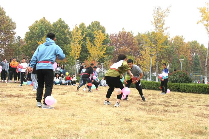本次活动的主题是“青春恣意,风华蓬勃”,设有五个游戏项目,每个部门派出相应人数参加游戏。第一环节是手拉手一起走,每个部门派出四位成员,四位成员绑脚并排走,体现了团队之间的团结合作。接着第二个游戏环节是夹传气球,即出战四位成员,分别由两人一组夹着气球传递给另外两人并最后捏爆气球,考验两个人之间的默契配合。接下来是踩气球游戏,每个部门派出一位队员并捏爆对方成员的气球,战况激烈,竞争缺又不乏合作。听歌识曲环节,全体成员围坐在一起听歌猜歌名,猜错的成员需表演才艺,现场欢声一片。最后是一场友谊拔河赛,全体学生会成员分为两组进行了比赛,体现同学们的团队协作精神。待所有游戏项目结束后,学生会全体成员进行拍照合影留念。
