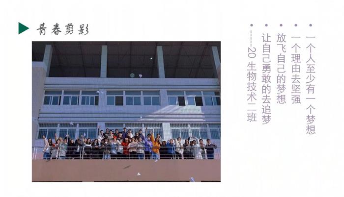 本次活动采取线上线下结合的方式,活动开始,各班班级负责人依次上台利用腾讯会议进行PPT演讲,他们为大家详细介绍了自己的班级并展示了自己的班级合照。其中,有的班级晒出了自己班级参加运动会时的合照,展现了自己班级团结合作,一起拼搏的风采;有的班级晒出了自己班级军训时期的照片,展现了同学们不畏艰苦的精神,生动形象的展现了班级同学积极奋进的精神风貌;有的班级晒出了自己班级的高光时刻,展现了自己班级同学温馨和谐,共同进步的画面。评委们认真观看选手的PPT并聆听他们的演讲,秉着公平公正的原则,结合各选手在照片创意和演讲的表现力等方面综合评分。最终,19生物技术(中外)等2个班级荣获一等奖,20生物技术1班等3个班级荣获二等奖,20食品质量与安全等3个班级荣获三等奖。