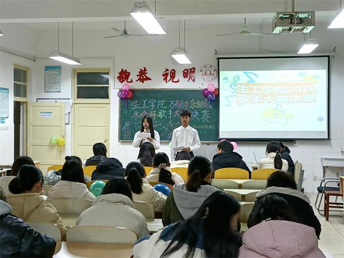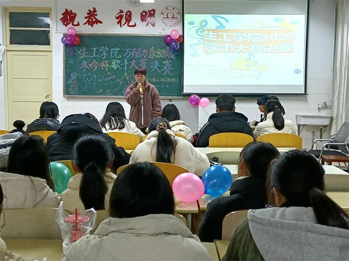 为丰富同学们的校园生活,营造清新的校园文化氛围,12月12日晚上7点,生工学院“万有音力,乐动青春”冬吟杯歌手大赛于实验楼A521成功举办。