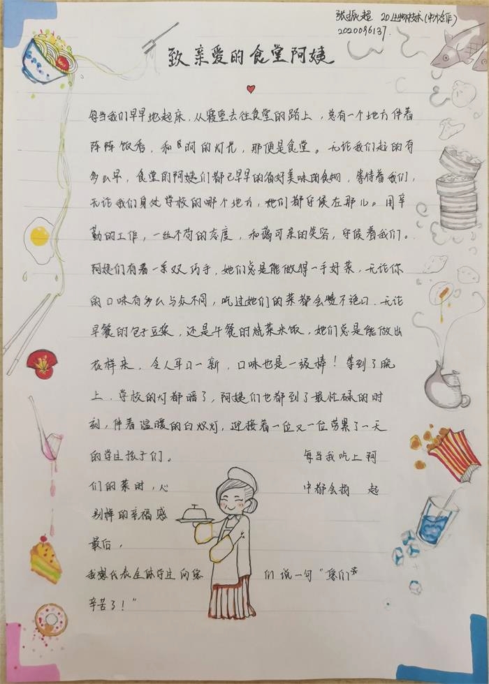 本次比赛要求现场写作,由工作人员分发A4纸,参赛选手需提前准备签字笔及绘画工具,可在自己的作品中适当的加入绘画。比赛过程中,现场一片寂静,参赛选手谨遵比赛规则以及工作人员安排。每个参赛选手都有着不同的构思,参赛作品风格迥异,写作手法多种多样,却又不脱离主题。每隔一段时间,都会有工作人员提醒参赛选手比赛的剩余时间。比赛结束后,由评委进行评选。最终,20食品科学与工程闫寒汐等3人荣获一等奖,20生物技术1班刘羽佳等4人荣获二等奖,20生物技术(中外)樊越等6人荣获三等奖。