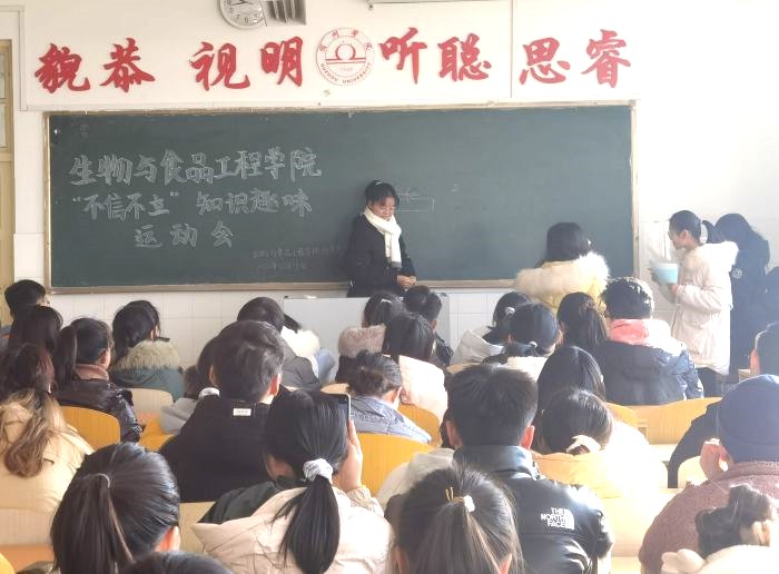 为丰富同学们的课余生活,让同学们认识到诚信的重要性,12月19日上午9点,生工学院于实验楼A521举办“不信不立”知识趣味运动会。生工学院全体学生会成员积极参加本次趣味运动会。