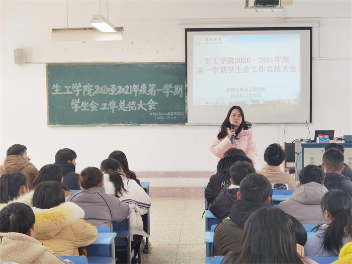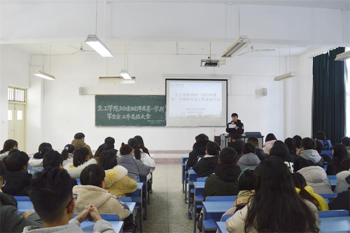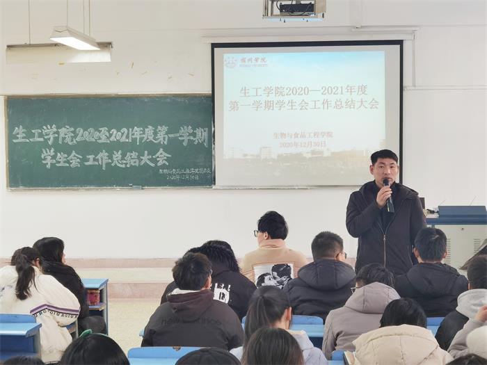 为深入学习贯彻习近平新时代中国特色社会主义思想,贯彻党的教育方针,落实立德树人根本任务。响应学校关于加强学生干部队伍建设的号召,2020年12月30日下午1点,生工学院于教学楼B107召开2020-2021年度第一学期学生会工作总结大会。生工学院团总支书记李娜、团总支副书记吴长昊以及全体学生会成员参加此次大会。
