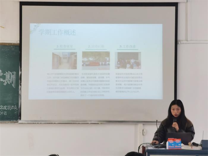 最后,由李娜进行总结发言,李娜对本学期各部门的工作表示肯定,并对下学期的工作安排作出部署,鼓励各部门再接再励,再创辉煌。同时,也指出了一些存在的问题,希望学生会的各个部门可以团结一致,提高工作效率,从工作中吸取教训、总结经验,不忘初心、砥砺前行。