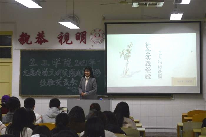 社会实践是巩固知识的必要手段,也是大学生成长成材的重要途径。为相互交流学习社会实践经验,增强志愿服务意识。3月13日晚,生工学院寒假社会实践经验交流会于实验楼A521教室成功举办,2019、2020级各班以及志愿者服务队全体队员参加了此次交流会。