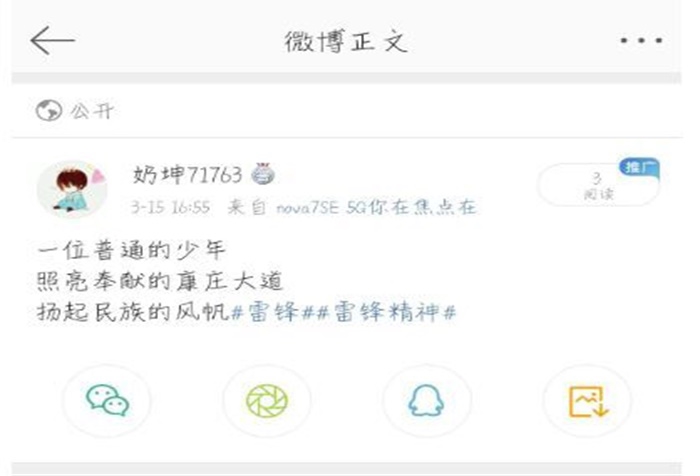 本次活动于线上进行,参赛人员需自创三行短诗,通过QQ、微博等社交软件发布作品,宣传雷锋精神。参赛人员自创的三行短诗风格迥异,各有特色。有的短诗结合新冠抗疫慷慨激昂、感人肺腑,有的短诗缅怀纪念,有的短诗则独具匠心,配上与诗句相关的图片。寥寥三行诗,紧扣主题,表达对雷锋精神的高度赞扬,以及对其无私奉献精神的学习,让雷锋精神真正成为一种习惯,一种民族精神的延续。