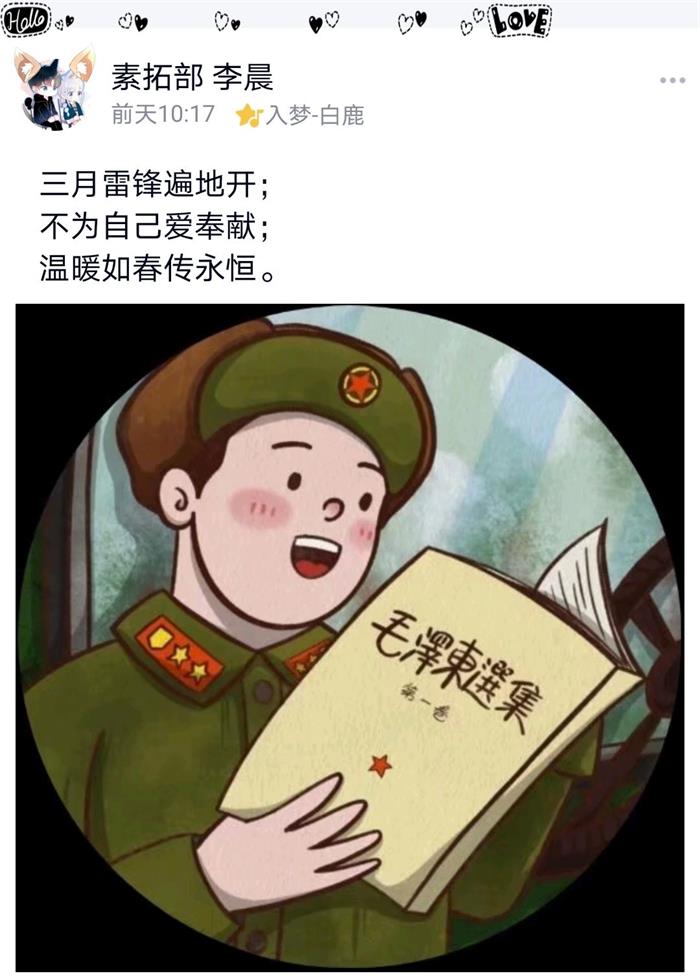 3月18日中午12点30分,生工学院在线上举办了2021年“三月春风暖人心,雷锋精神照我行”主题三行短诗活动。