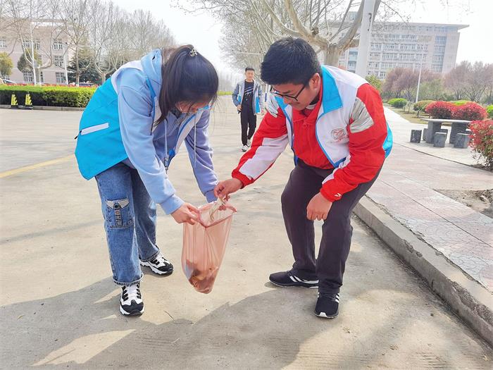 经过活动前期宣传,同学们热情高涨,积极参加本次活动。活动开始前同学们于三食堂门口集合,负责人对到场同学进行小组分配,进行纸质签到,并分发志愿者服和劳动工具。活动中,同学们以小组为单位,互相配合,有的人戴手套,有的人拿煤炭夹,还有的人拿塑料袋,将校园地面的垃圾拾起。虽然很辛苦,但都没有人喊累,不到一会儿,每个人的袋子都满了。活动结束后,同学们回到三食堂门口集合,并归还志愿者服。待负责人拿回劳动工具,检查无误后,进行合影拍照留念。为期两天的志愿活动圆满结束。