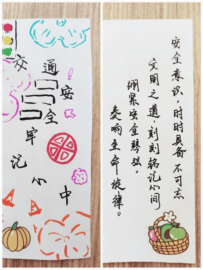 本次书签制作活动的主题是“强化安全意识,构建和谐校园”,由选手收集材料制作书签并将作品交于部门负责人。在此次活动中,选手们围绕交通安全的主题,充分发挥自己的想象力和艺术才能,制作出各种精美、充满奇思妙想的书签。有的在外观设计上别出心裁,把书签裁剪成动物、卡通人物、树叶形等,有的为书签戴上精美的装饰,还有的在文字上下足功夫,用自己构思的安全标语来提醒自己。可爱的形状、美丽的图案、隽秀的字迹让评委们目不暇接。最终,经过评委的评定,20食品质量与安全侯李豫等3人获得一等奖,19生物技术中外合作孙永琪等6人获得二等奖,20生物技术1班刘羽佳等9人获得三等奖。