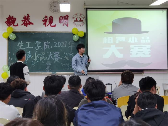 为了促进校园文化发展,弘扬校园文化。4月17日晚7点,生工学院于实验楼A521举办2021年相声小品大赛,生工学院学生积极响应并参与此次活动。
