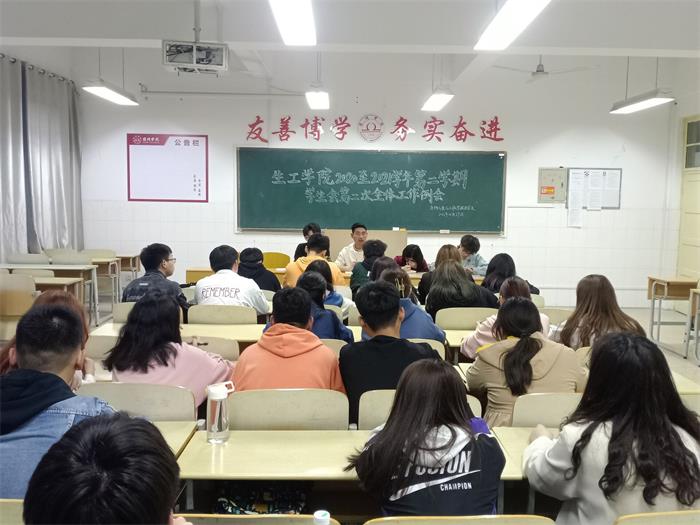 4月27日晚7点,在实验楼A516,生工学院顺利举办2020至2021学年第二学期学生会第二次全体工作例会。生工学院团总支副书记吴长昊老师出席本次会议,学生会负责人及各部门负责人参加此次例会。