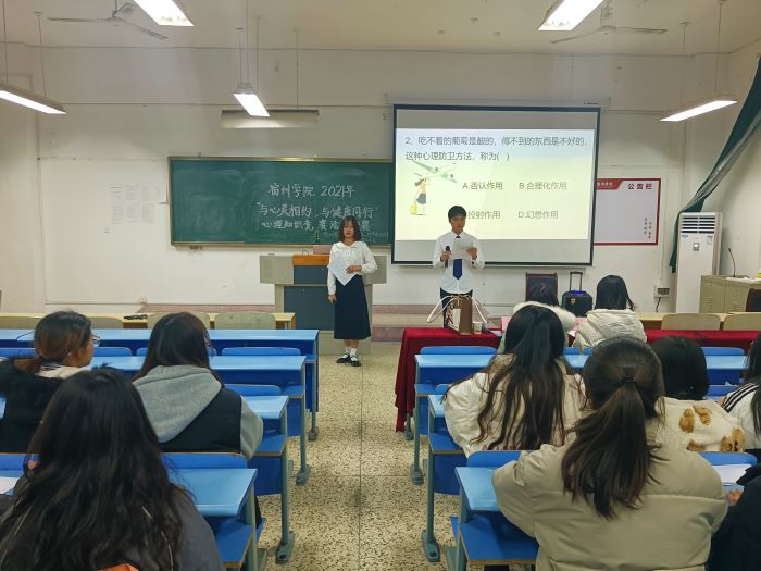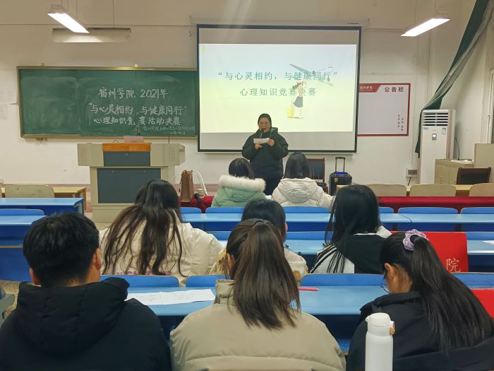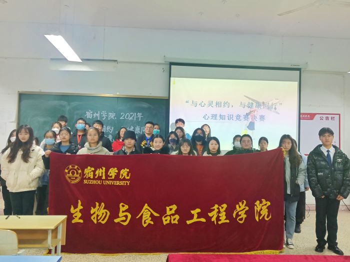 为了响应国家“关注大学生心理健康问题”的号召,更好的宣传、普及心理健康知识,12月1日晚,生工学院于教学楼B109举办2021年宿州学院“与心灵相约,与健康同行”心理知识竞赛活动决赛。本次竞赛特邀张梦琪老师和孙欣冉老师担任评委,各二级学院参赛选手参加了本次比赛。