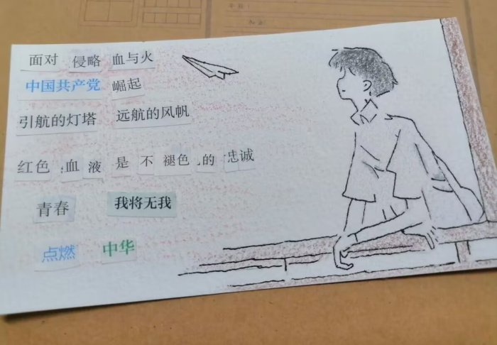 在本次活动中,学生们围绕庆祝党的二十大胜利召开为主题,创作了多篇具有特色的诗词作品。切实以诗传情、以诗明志,展现了建党101周年来,中国共产党带领人民取得的辉煌成就和中华儿女追求幸福、不懈奋斗的精神风貌。有的同学用五彩的画笔写下动人心弦的字眼,并通过拼贴的方式组成了朗朗上口的诗句;而有的同学则是通过收集杂志或报纸,并从上检索和剪切下切题的字词,进而将它们组合成诗句。经过最终评定,22食品质量与安全刘琴荣获一等奖;21生物技术2班罗紫韩和21食品科学与安全胡晓晴荣获二等奖;21药学张苗苗、21药学叶宇恒和22食品质量与安全李雅慧荣获三等奖。