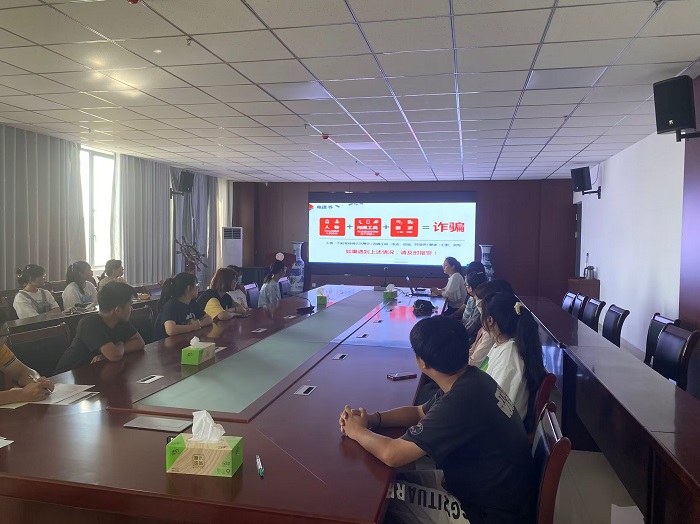 活动现场,李娜老师强调,近期大学生校园诈骗案件花样不断,案值不断增大。部分不法分子利用在校学生阅历浅、安全防范意识差等弱点,潜入校园诈骗钱财,同时也告诉同学们遇到这一现象的应对措施。接着又从电信诈骗的概念、情况、现状、形式种类说起,并结合今年大学生受骗案例让同学们了解其基本特征,掌握相关知识,提高自己的防骗安全意识。并且指出要有针对性地开展安全教育工作,增强与提升学生防范各类诈骗、规避网贷风险的意识和能力。同学们踊跃参与活动,并表示将会提高对诈骗的识别能力,增强防范意识,远离并抵制网络诈骗。
