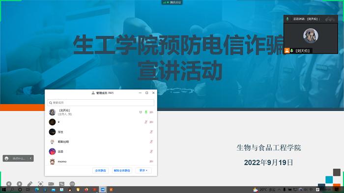 为了提高大学生自我防范意识,维护同学们的利益,预防和减少电信诈骗案件的发生。9月19日下午,生工学院于实训楼A1107成功举办预防电信诈骗专题讲座,生工学院全体学生积极参与。